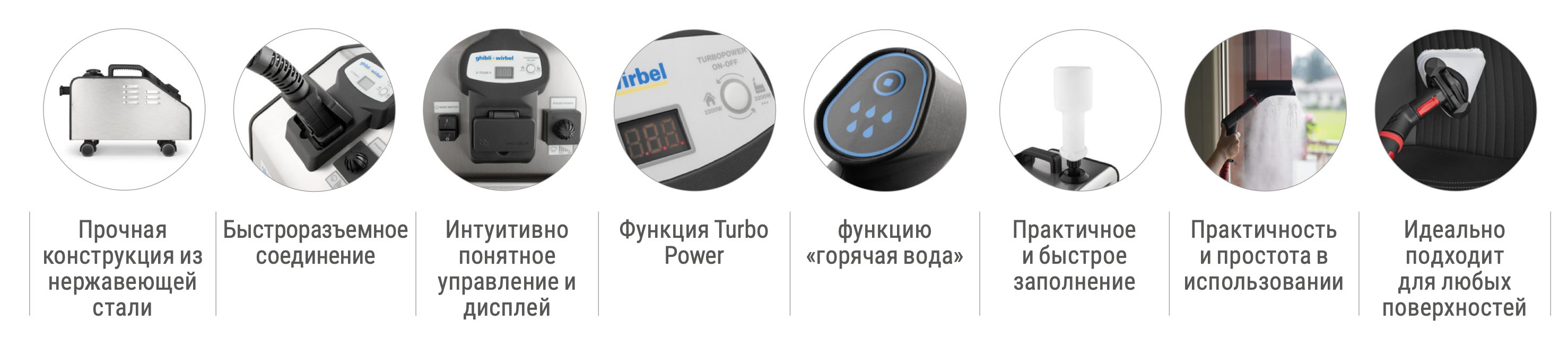 - Функция подачи влажного (горячего) пара — усиленная очистка сложных загрязнений