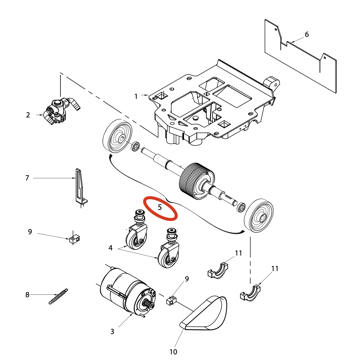 - Функция: Дифференциал в сборе поломоечной машины отвечает за распределение крутящего момента между колесами в случае различных скоростей вращения.