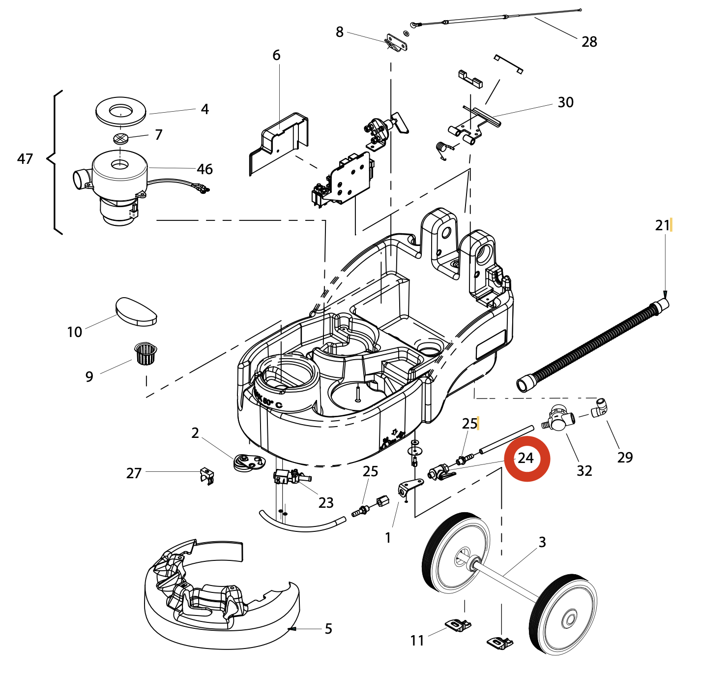Кран подачи воды в поломоечной машине регулирует подачу воды в систему машины для использования в уборке.