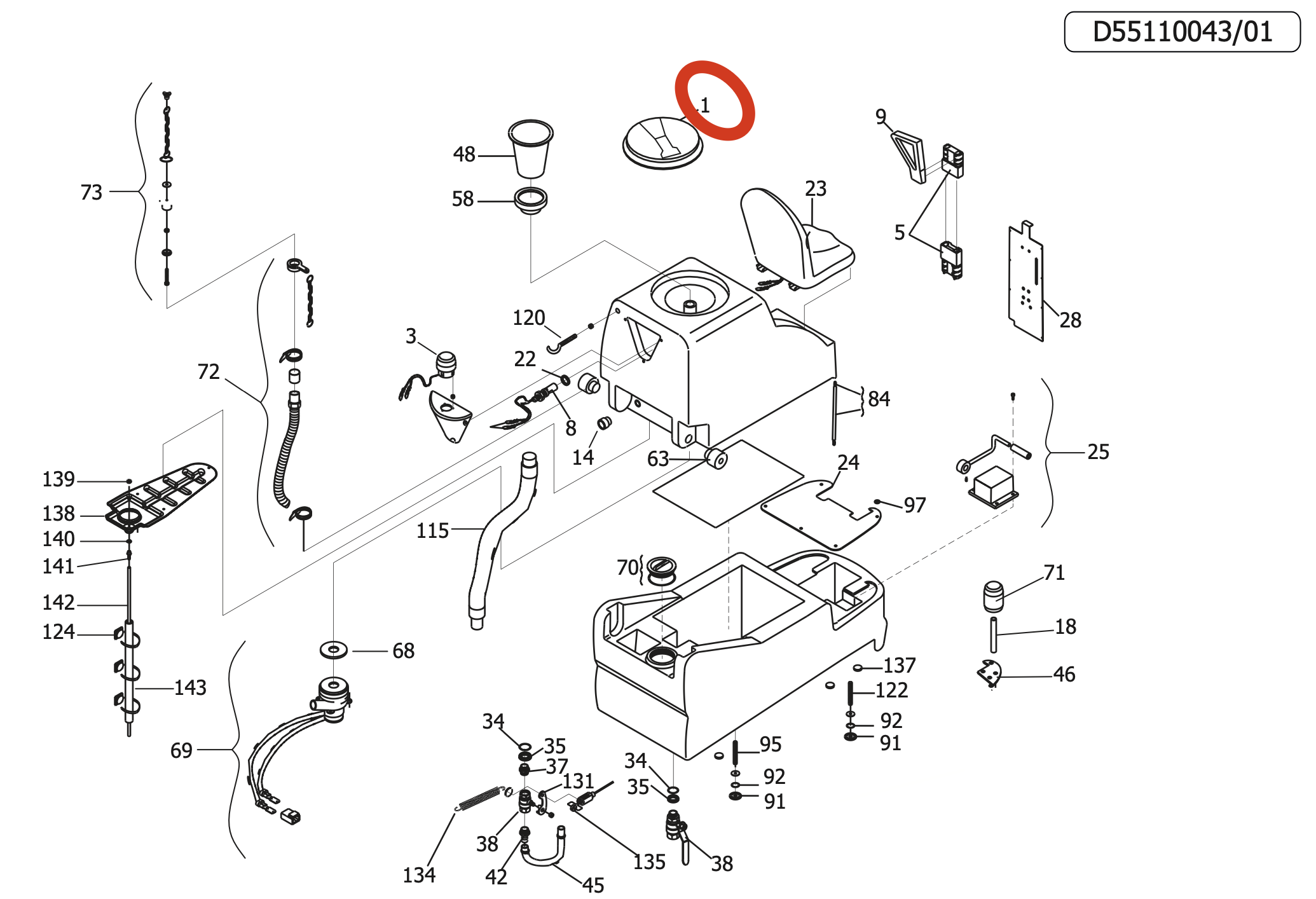 Крышка бака – это компонент поломоечной машины, который закрывает отверстие бака, предназначенного для хранения воды или раствора моющего средства.
