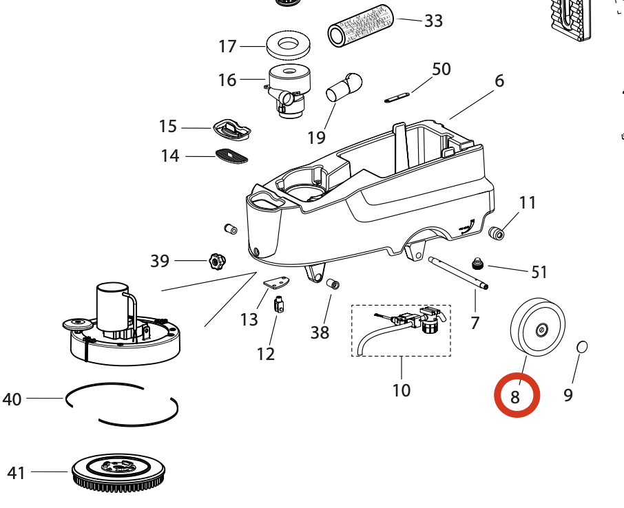Ведущее колесо поломоечной машины - это колесо, которое осуществляет передвижение поломоечной машины или другого устройства. Оно приводится в движение силой, которая передается от двигателя или другого источника энергии, и обеспечивает передвижение машины вперед или назад.