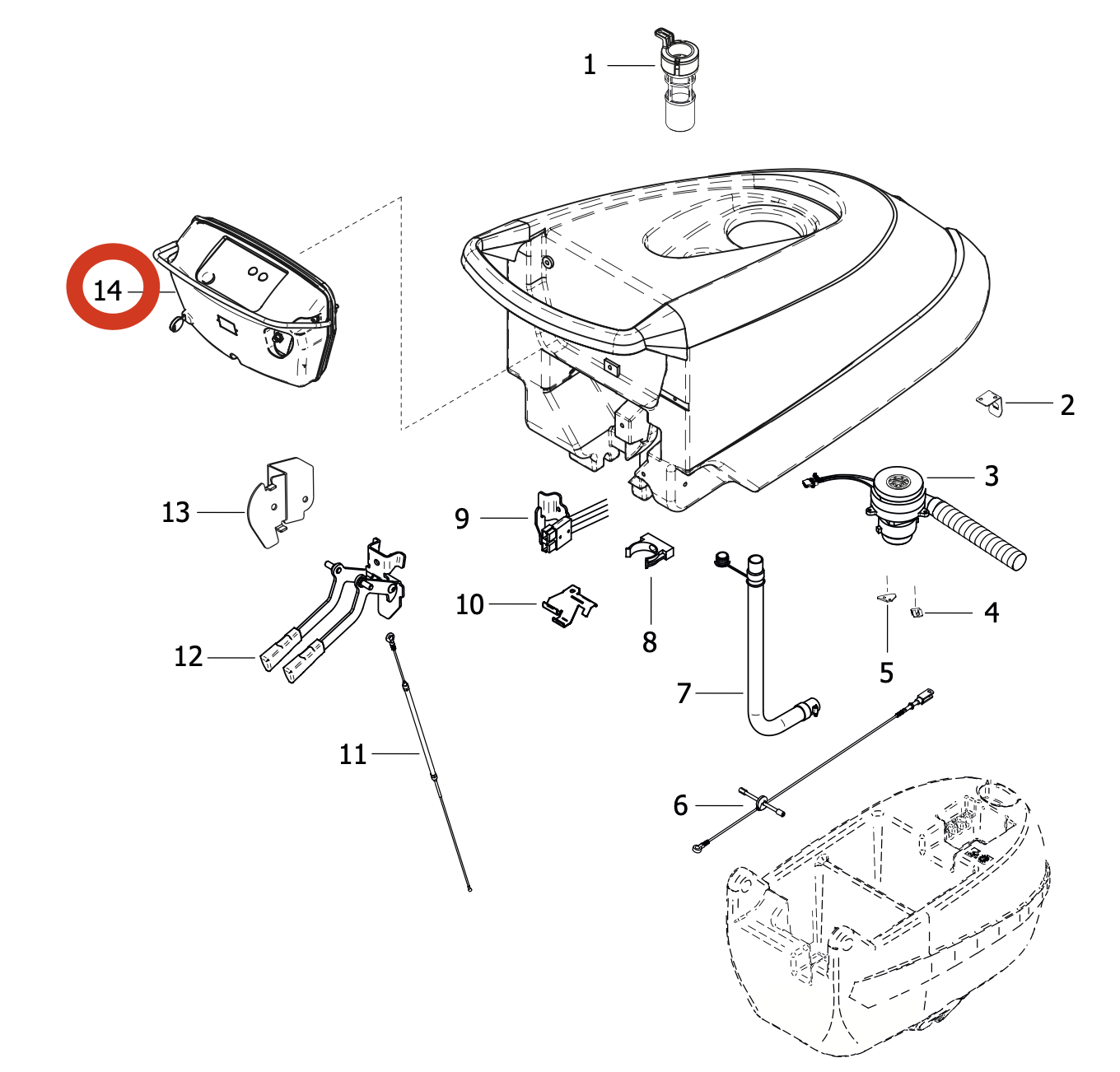 Деталь на схеме представлена под номером 14: