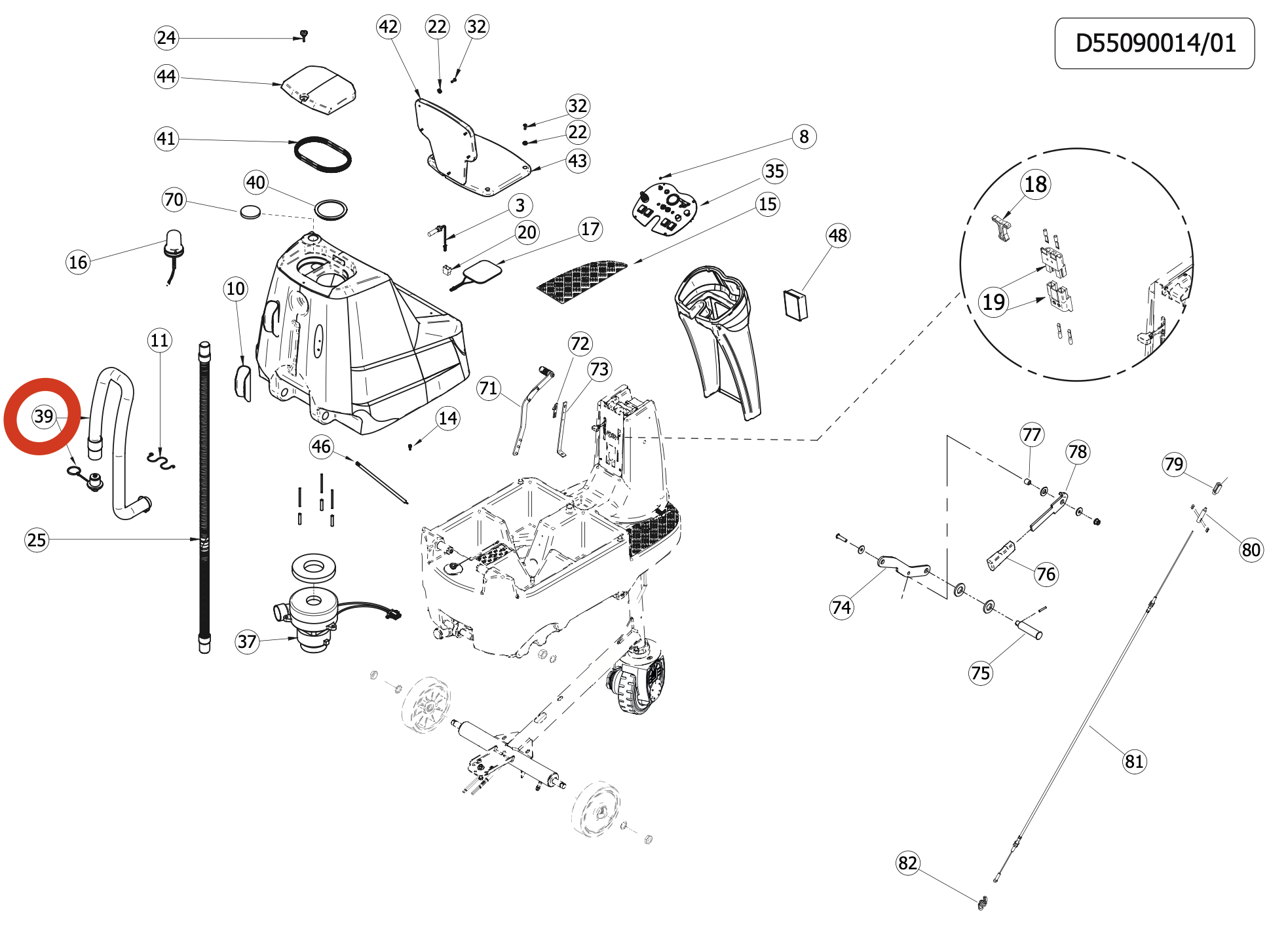 1. Сливной шланг предназначен для отвода грязной воды, собранной во время уборки, из бака машины. Он обеспечивает эффективное и быстрое удаление отработанной воды, что позволяет оператору продолжать работу без перерывов.